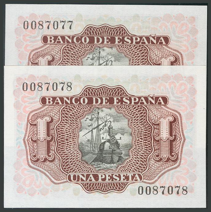 1 Peseta. 22 de Julio de 1953. Pareja correlativa. Sin serie. (Edifil 2017: 465). Apresto original. SC-.