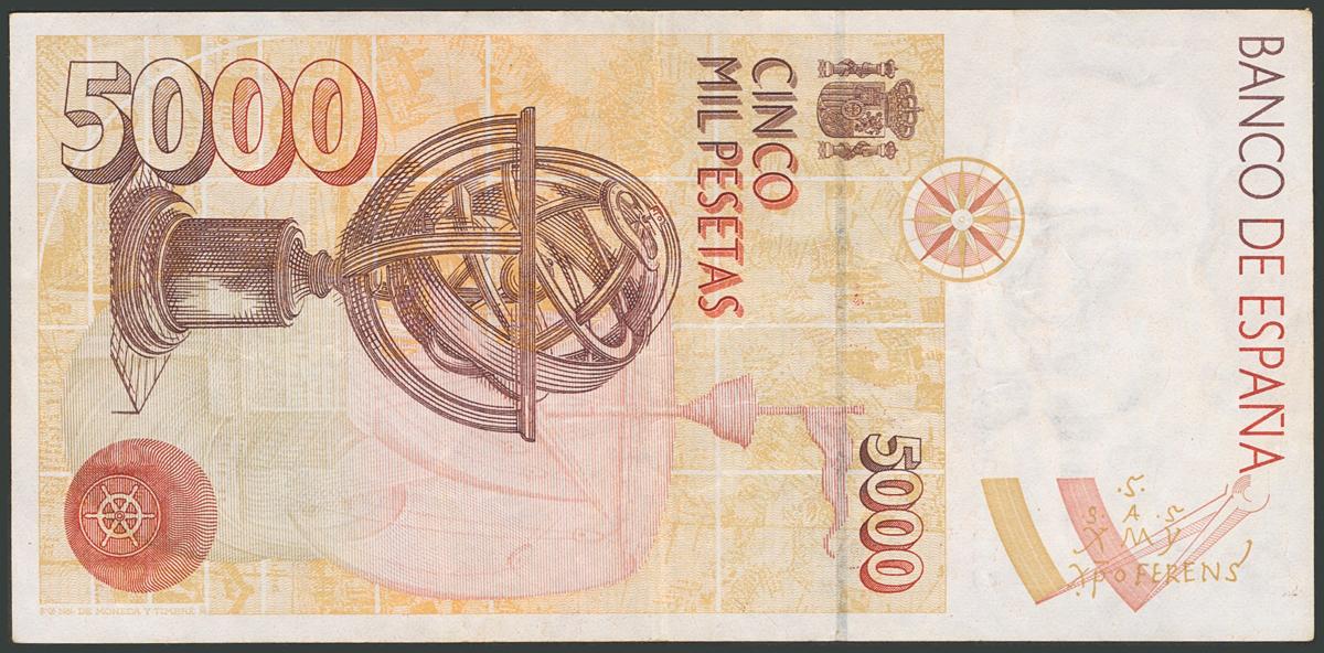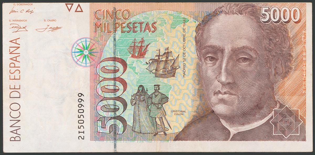 5000 Pesetas. 12 de Diciembre de 1992. Error de guillotinado. Serie 2I. (Edifil 2017: 484a). Inusual. MBC+.