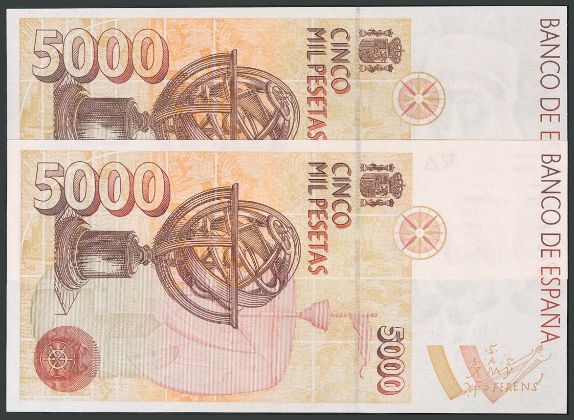 5000 Pesetas. 12 de Diciembre de 1992. Serie 4H. Pareja correlativa. (Edifil 2017: 484a). SC.