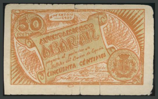 AYUNTAMIENTO DE ABARAN (MURCIA). 50 Céntimos. 1937. Montaner Nº 3-J; R. González Nº 17. BC-.