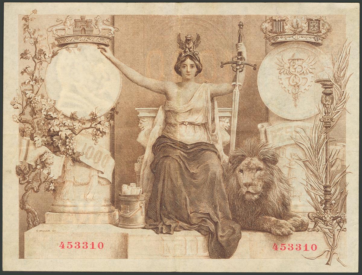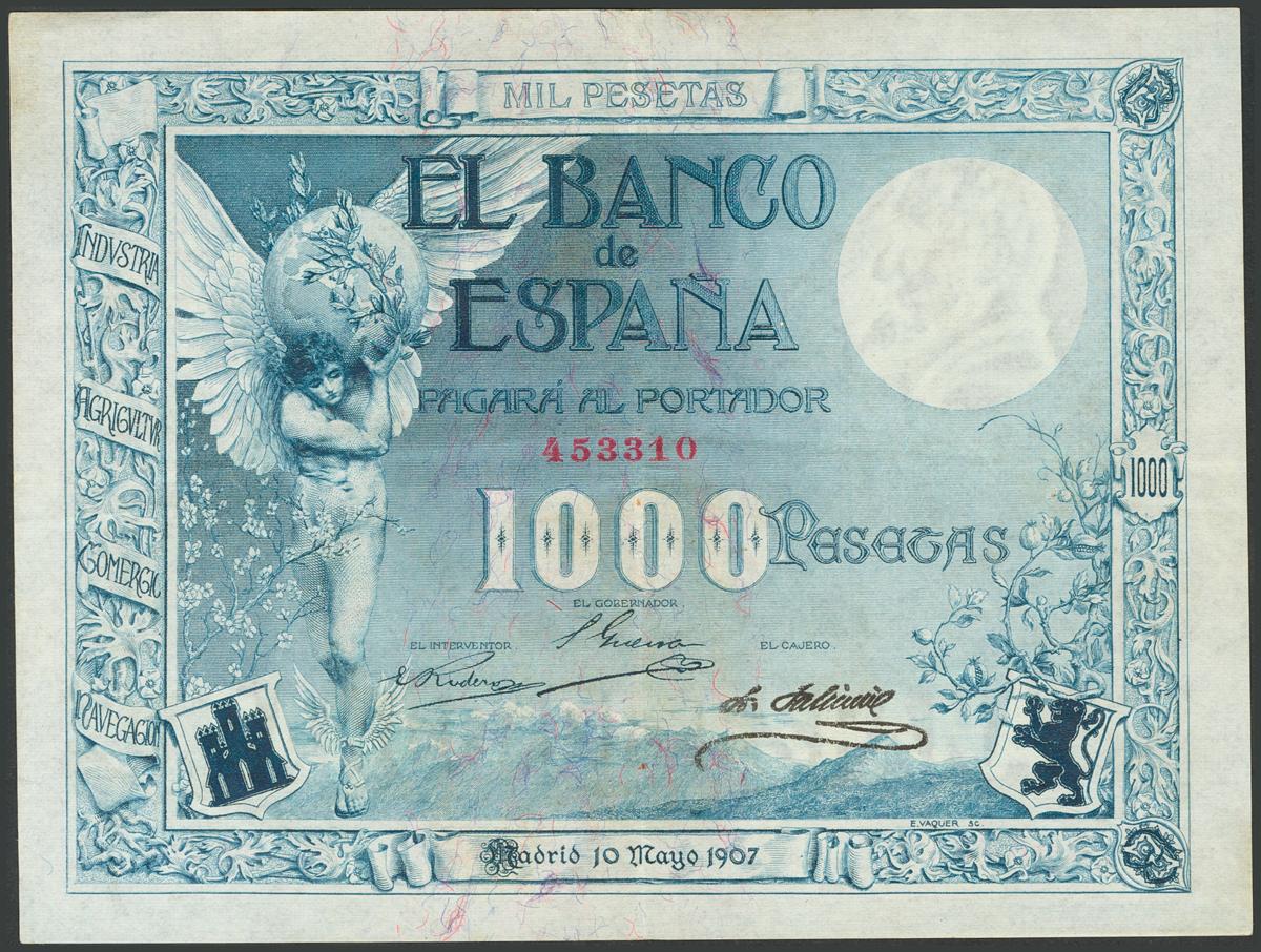 1000 Pesetas. 10 de Mayo de 1907. Sin serie. (Edifil 2017: 317). Conserva parte del apresto. MBC+.