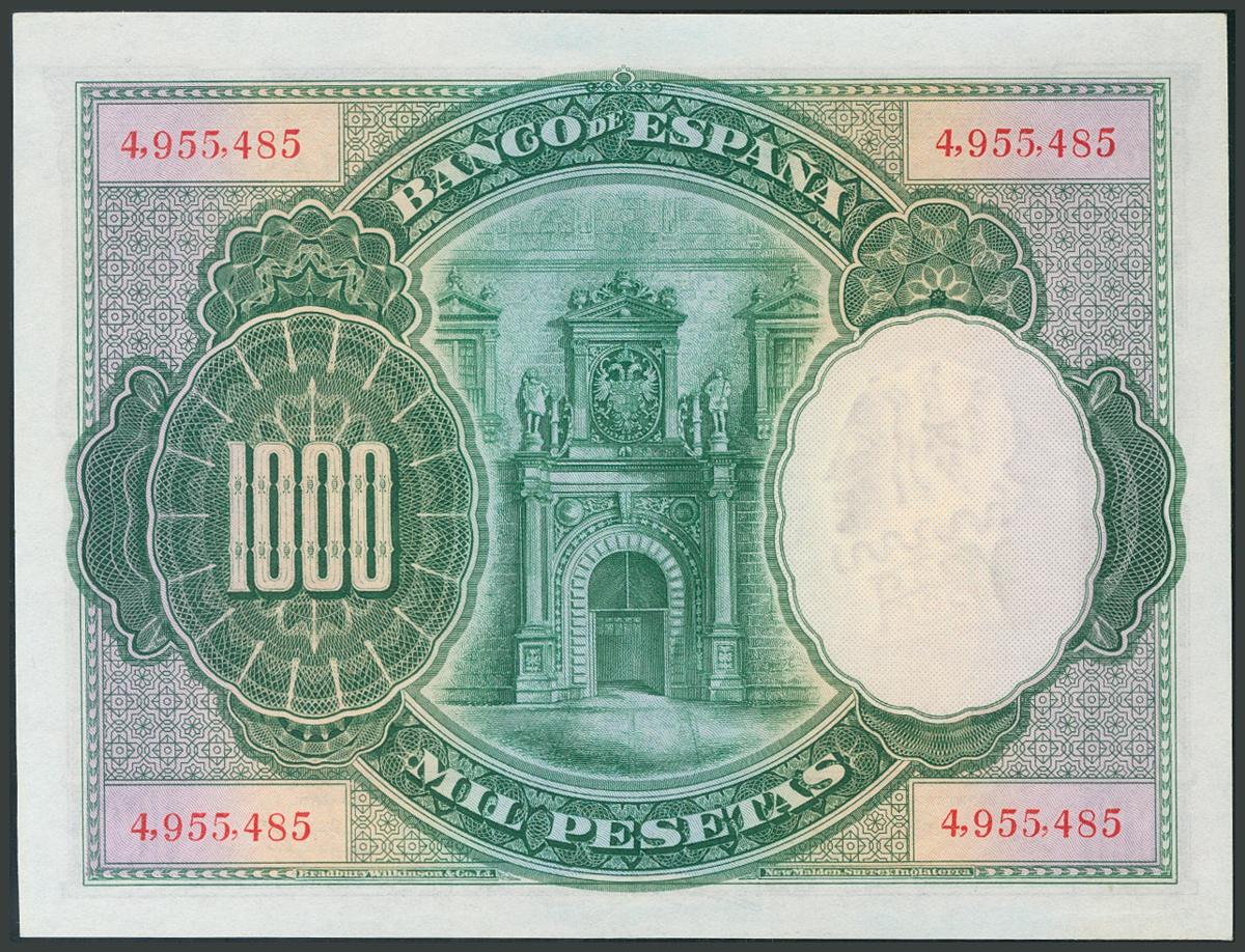 1000 Pesetas. 1 de Julio de 1925. Sin serie. Invisible doblez vertical. (Edifil 2017: 351). Apresto original. Raro. EBC+.