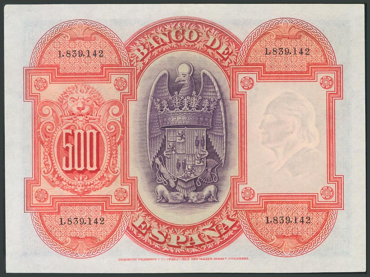 500 Pesetas. 24 de Julio de 1927. Sin serie. (Edifil 2017: 352). Conserva su apresto original. EBC+.