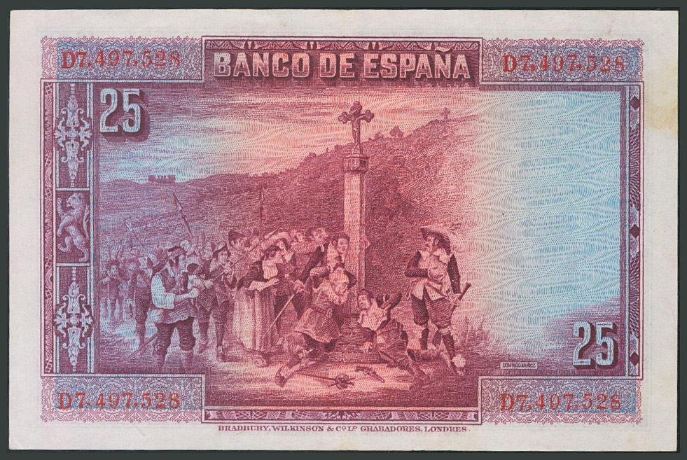 25 Pesetas. 15 de Agosto de 1928. Serie D. (Edifil 2017: 353). Apresto original. EBC.