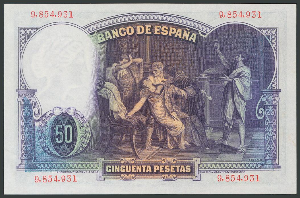 50 Pesetas. 25 de Abril de 1931. Sin serie. (Edifil 2017: 359). Conserva su apresto original. SC-.