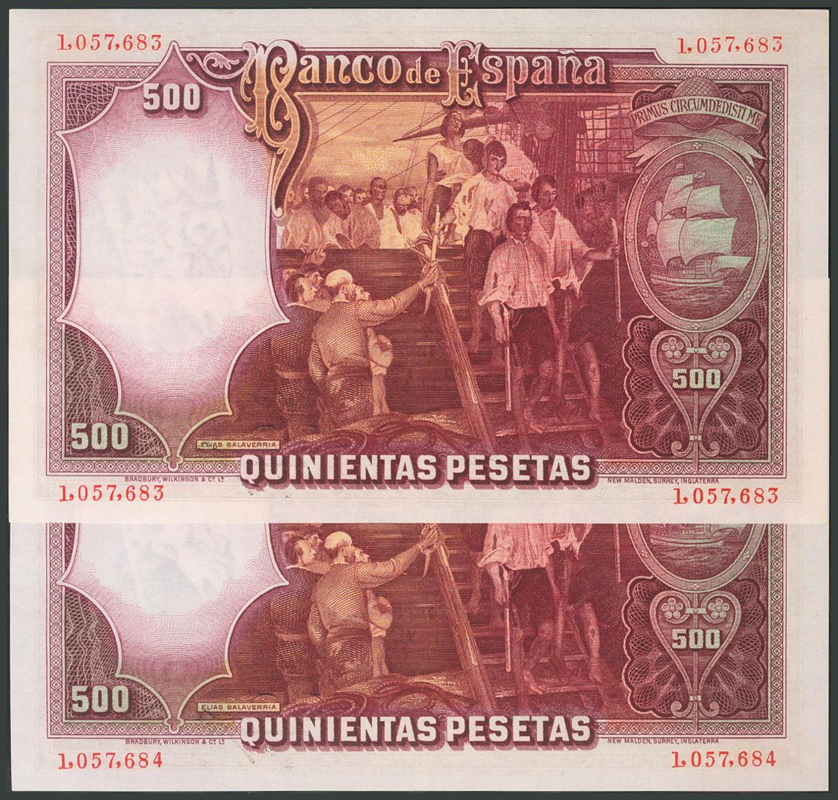 500 Pesetas. 25 de Abril de 1931. Pareja correlativa. Sin serie. (Edifil 2017: 361). Apresto original. SC-.