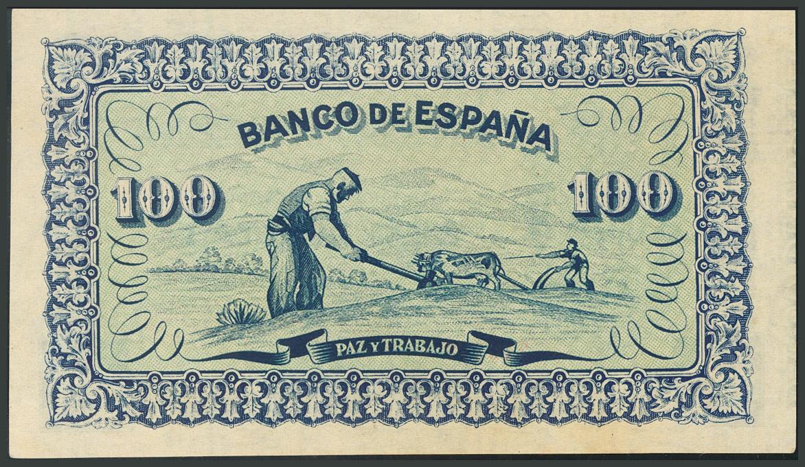 100 Pesetas. Septiembre de 1937. Banco de España, Gijón. Sin serie. (Edifil 2017: 399). SC-.