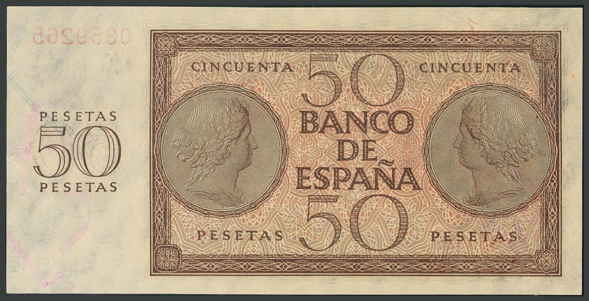 50 Pesetas. 21 de Noviembre de 1936. Banco de España, Burgos. Serie O. (Edifil 2017: 420a). Conserva su apresto original. SC-.