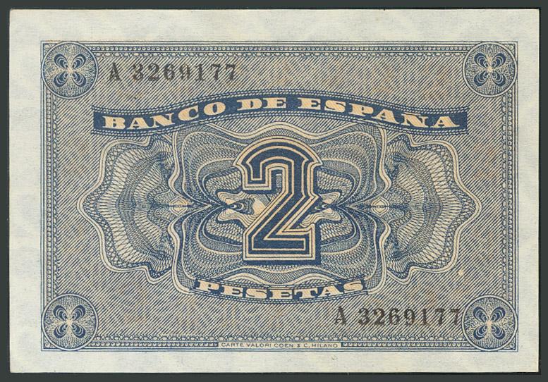 2 Pesetas. 30 de Abril de 1938. Banco de España, Burgos. Serie A. (Edifil 2017: 429). SC.