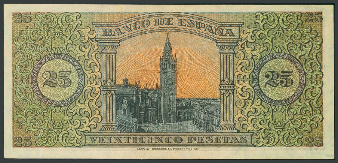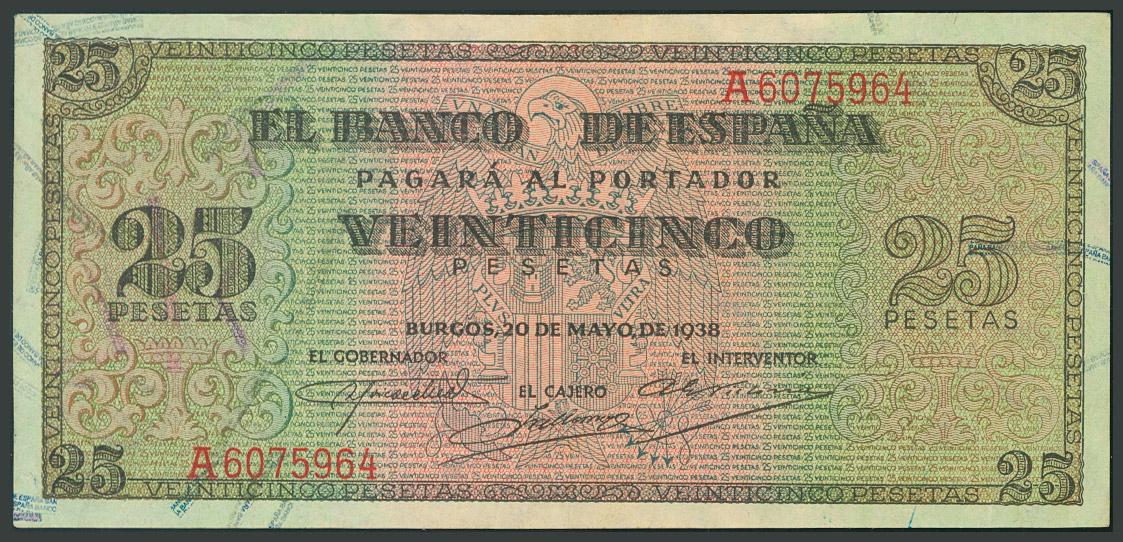 25 Pesetas. 20 de Mayo de 1938. Banco de España, Burgos. Serie A. (Edifil 2017: 430). EBC-.
