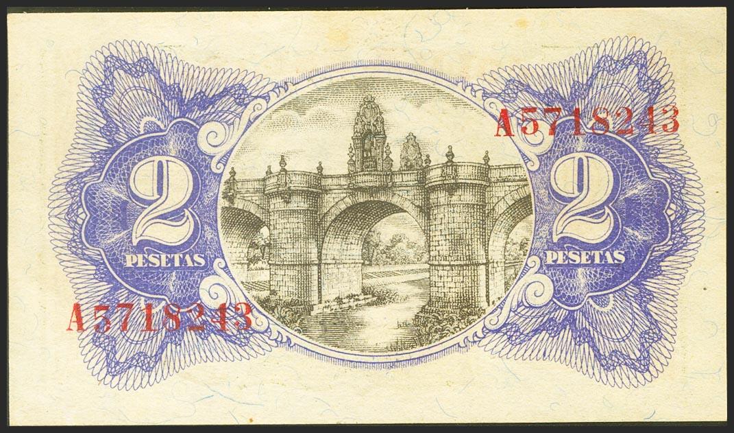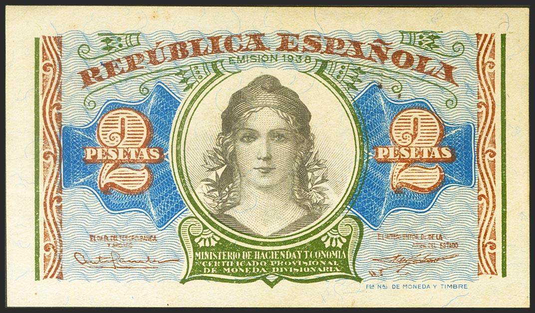 English 2 pesetas. 1938. Ministry of Finance. Series A. (Edifil 2021: 393). Original sizing. Almost Uncirculated-.