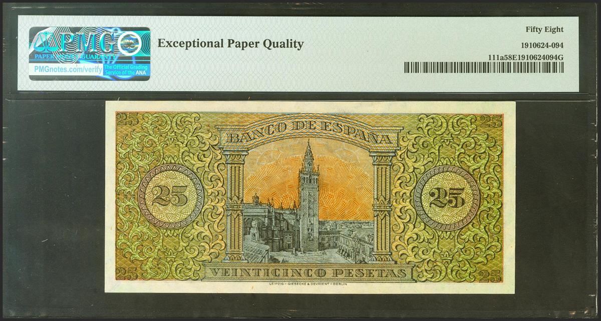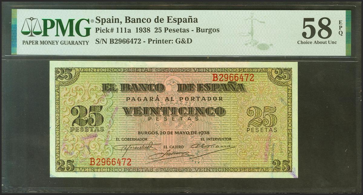 25 pesetas. May 20, 1938. Series B. (Edifil 2021: 430a, Pick: 111a). Original sizing. EBC+++. PMG58EPQ package.