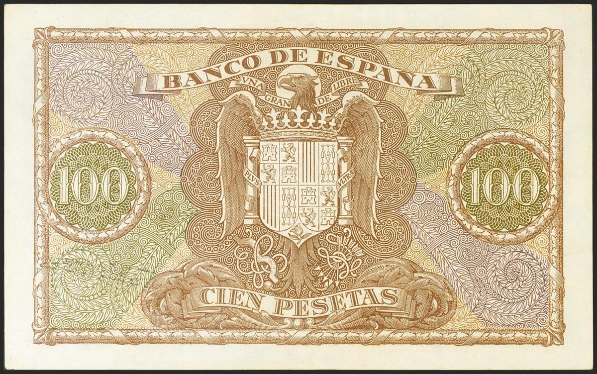 100 pesetas. January 9, 1940. Series A. (Edifil 2021: 438). Imperceptible vertical undulation, original finish. EBC++.