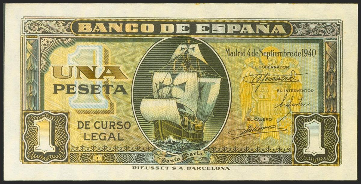 English 1 Peseta. September 4, 1940. Series I, last series issued. (Edifil 2021: 442a). Original sizing. Almost Uncirculated.