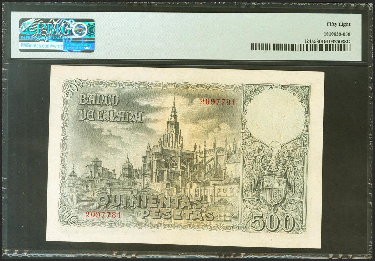 English 500 pesetas. October 21, 1940. No series. (Edifil 2017: 444). EBC++. PMG58 encapsulation.