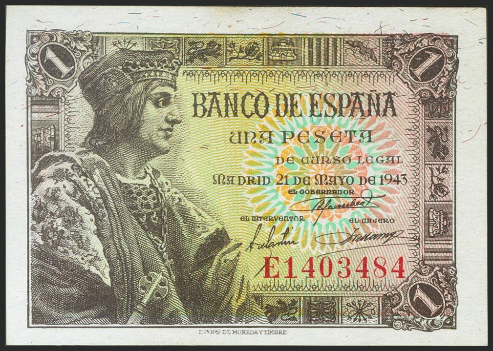 1 Peseta. May 21, 1943. Series E. (Edifil 2021: 447a). Original sizing. Uncirculated.