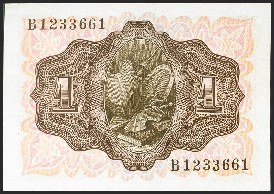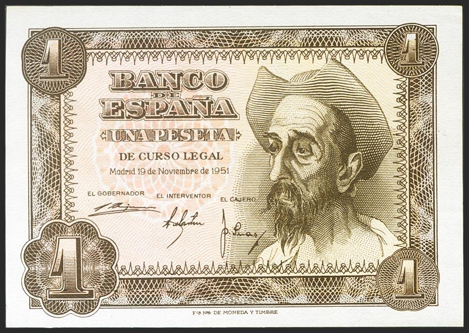 English 1 Peseta. November 19, 1951. Series B. (Edifil 2021: 461a). Original sizing. Uncirculated.