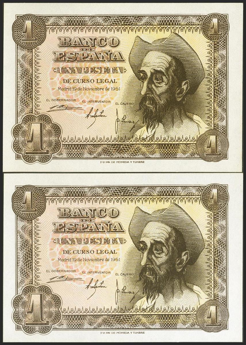English 1 Peseta. November 19, 1951. Correlative couple. Series B. (Edifil 2021: 461a). Original sizing. Almost Uncirculated.