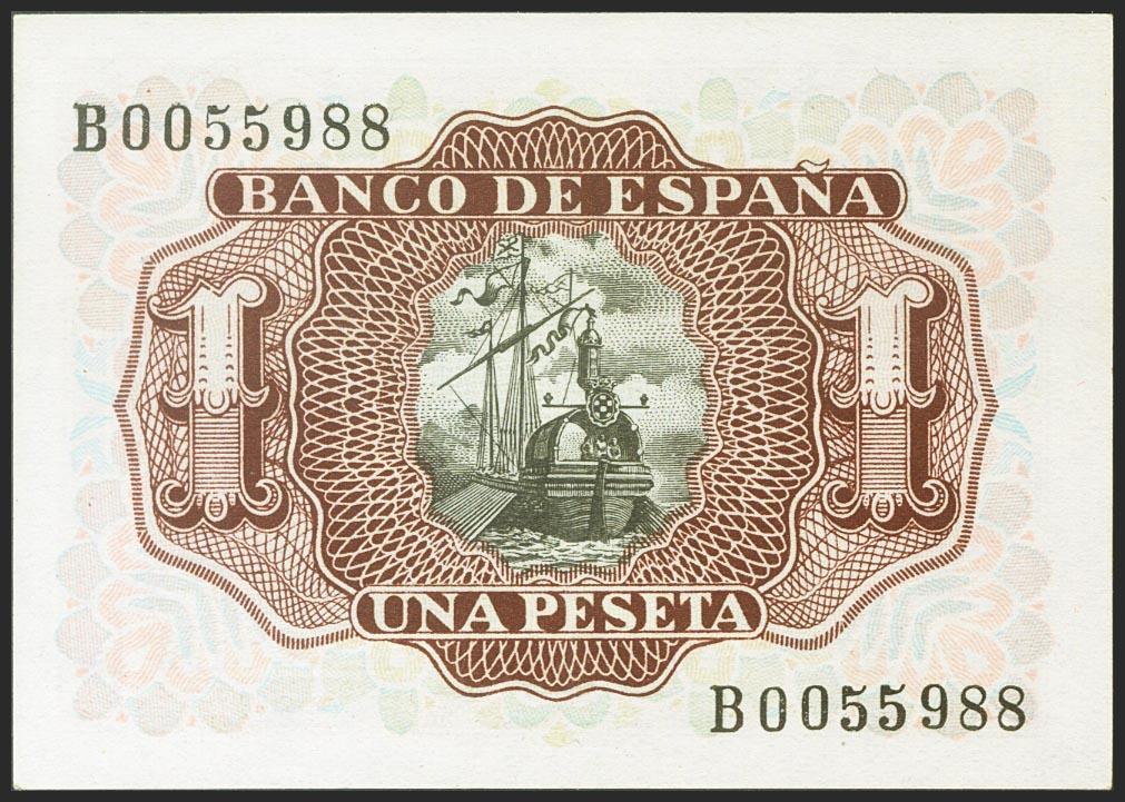 1 Peseta. July 22, 1953. Series B. (Edifil 2021: 465a). Original sizing. Almost Uncirculated.