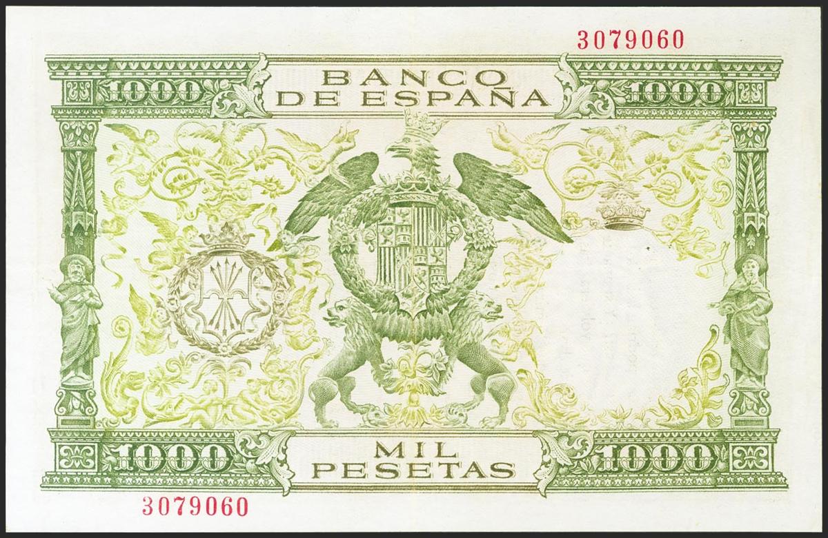 1000 Pesetas. November 29, 1957. No series. (Edifil 2021: 469). Unusual, it retains part of its original sizing. Extremely Fine.