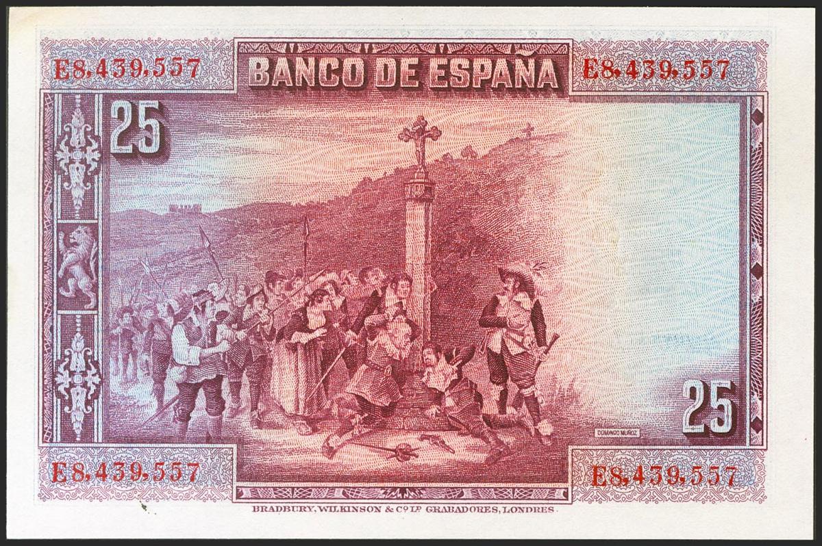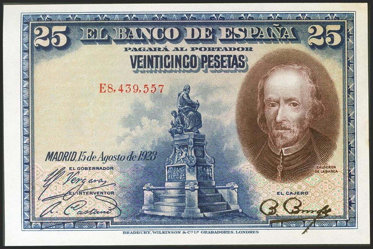 25 pesetas. August 15, 1928. Series E. (Edifil 2021: 353). It retains all its original sizing. Almost Uncirculated.