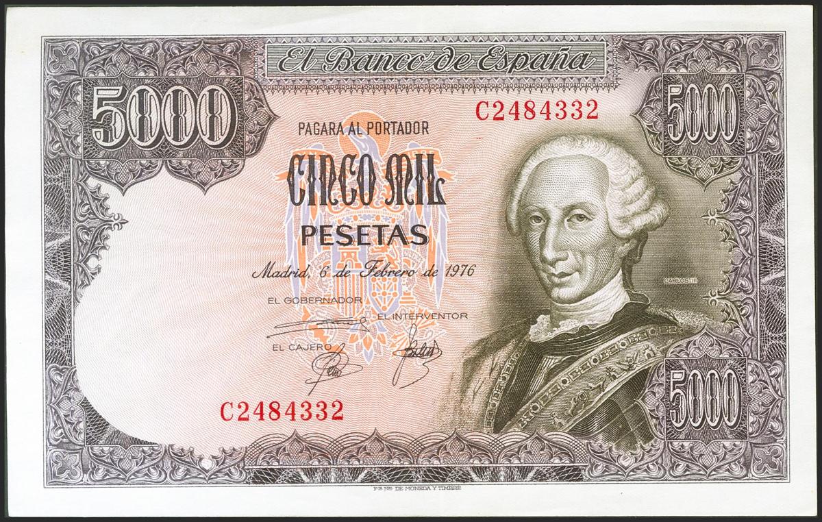 5000 Pesetas. February 6, 1976. Series C. (Edifil 2021: 475a). Extremely Fine.
