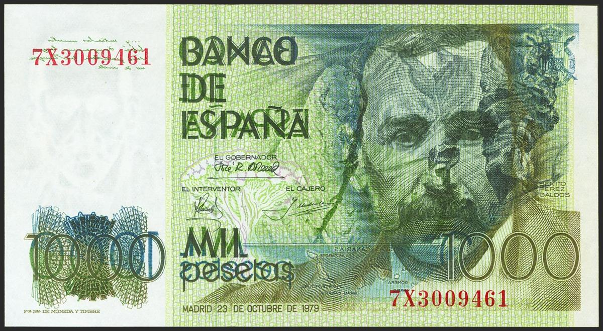 1000 Pesetas. October 23, 1979. Printing error on the front. 7X series. (Edifil 2021: 477a). Extremely Fine.