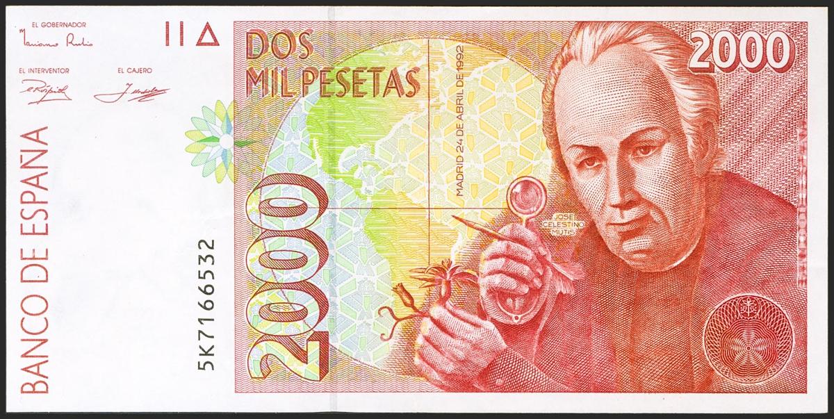 2000 Pesetas. April 24, 1992. Misprint on the back. 5K series. (Edifil 2021: 482Aa). Almost Extremely Fine.