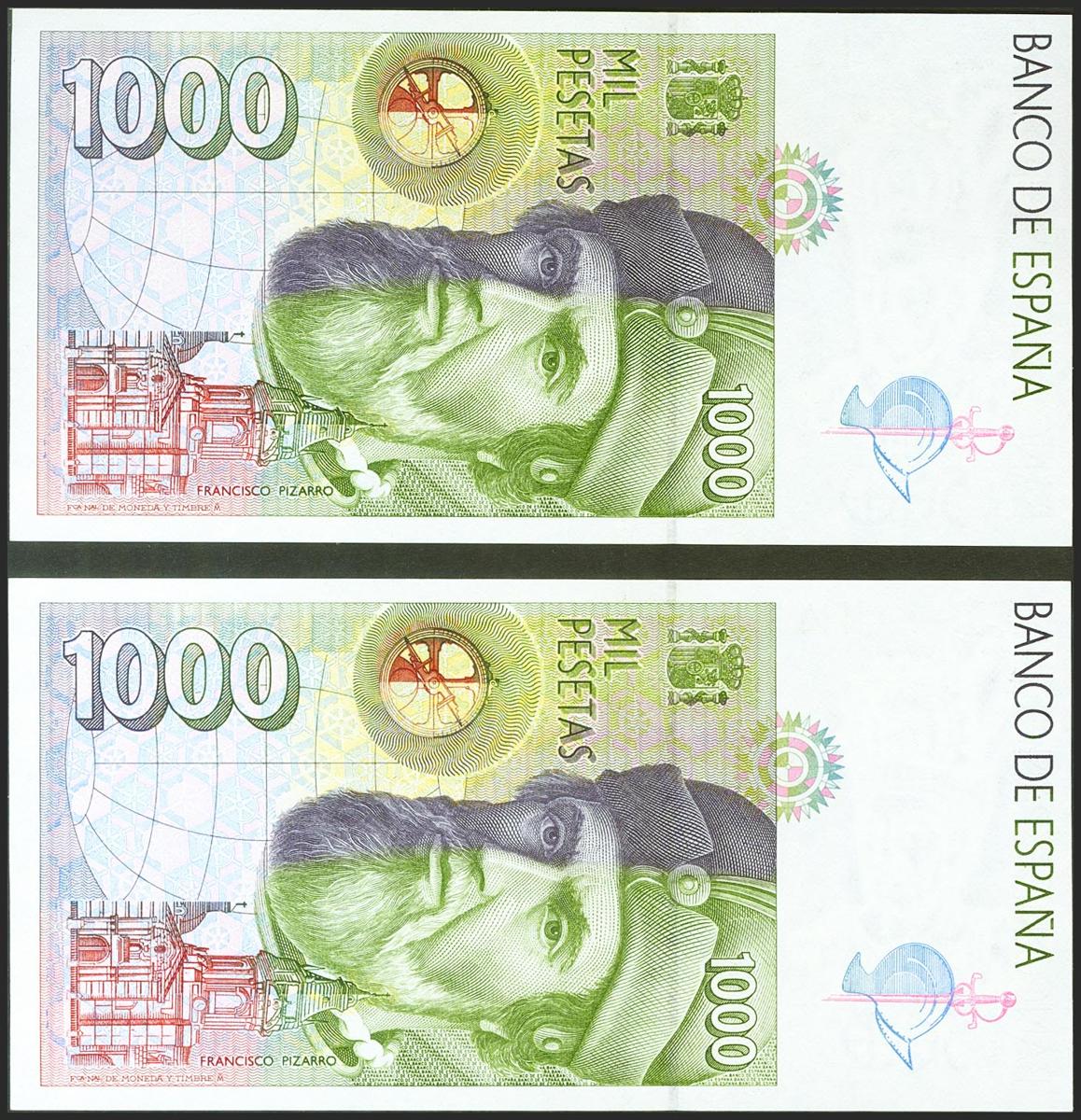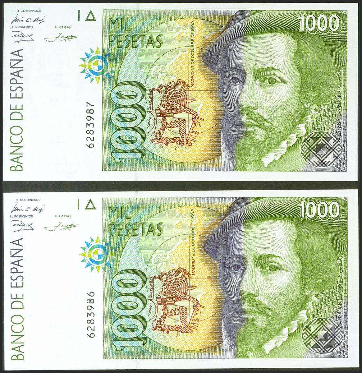 1000 Pesetas. October 12, 1992. Correlative couple. No serie. (Edifil 2021: 483). Uncirculated.