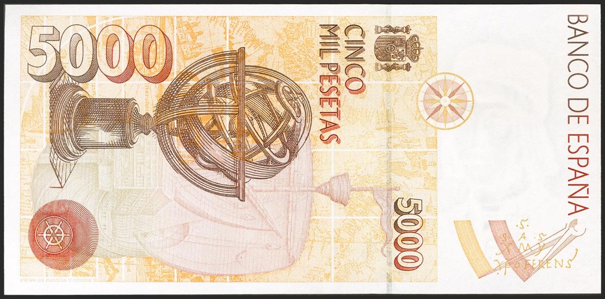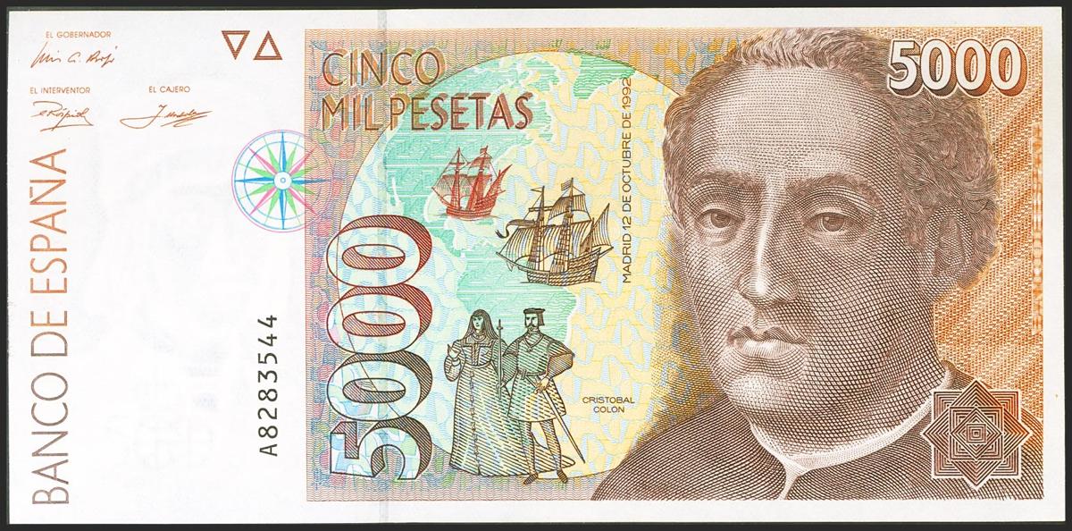 English 5000 Pesetas. October 12, 1992. Series A. (Edifil 2021: 484a). Uncirculated.