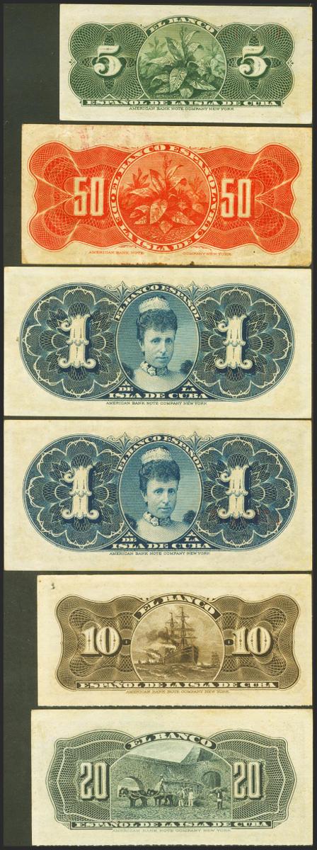 Set of 6 Banknotes of the Spanish Bank of the Island of Cuba in very good quality, most of them retain their original size. TO EXAMINE.