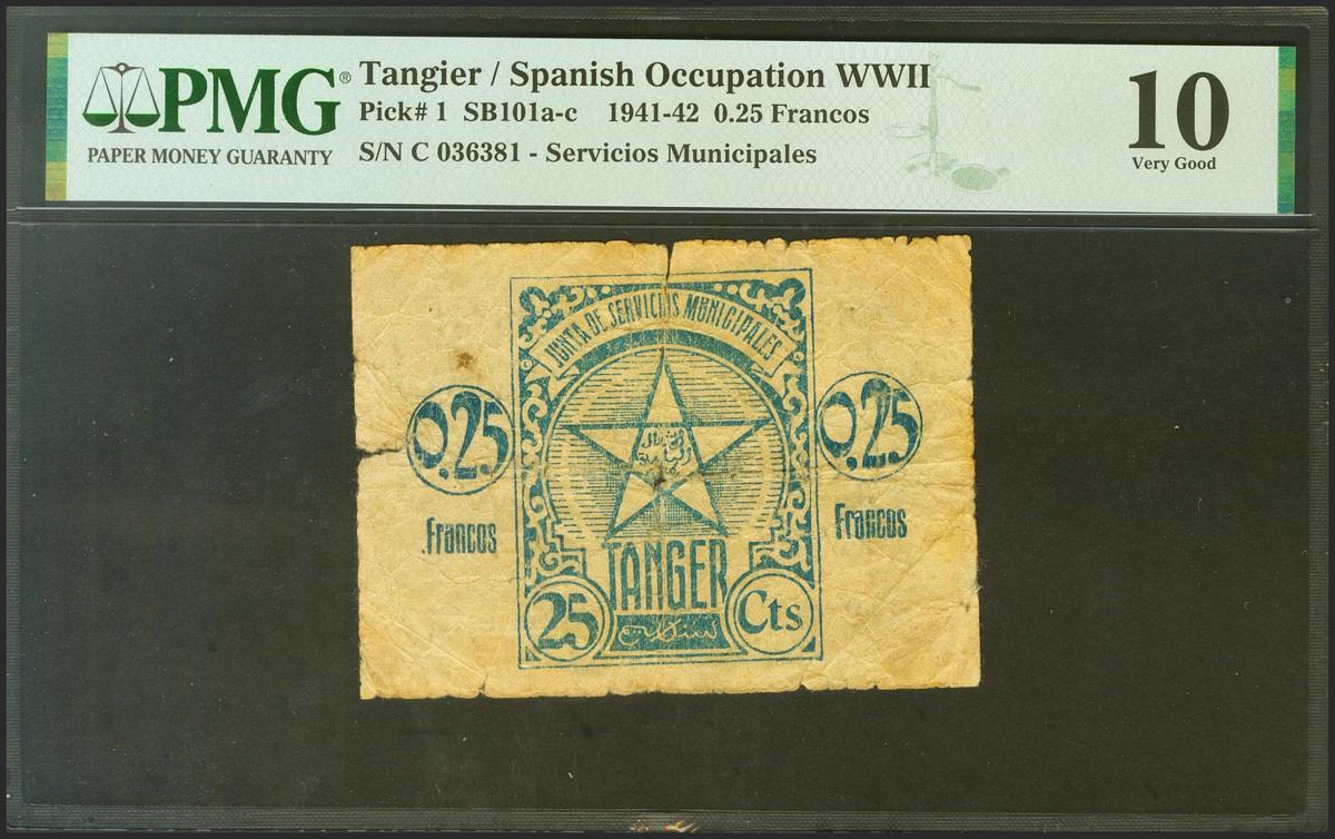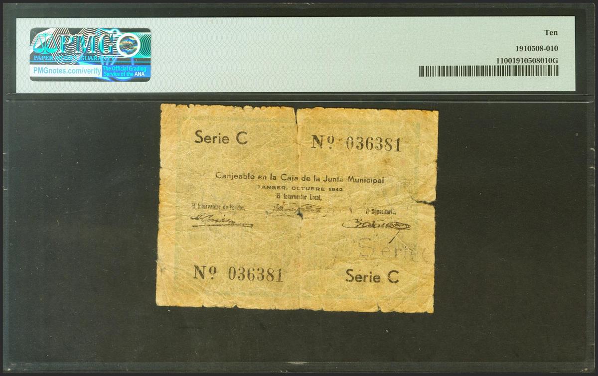 TANGIER. 0'25 Francs. August 1940. Series C. (Edifil 2021: 1, Pick: 1). Very rare. Fine. PMG10 encapsulation.