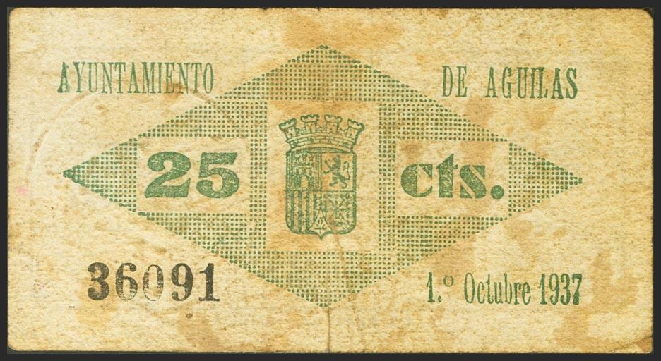 EAGLES (MURCIA). 25 cents. October 1, 1937. (González: 92). Almost Very Fine.