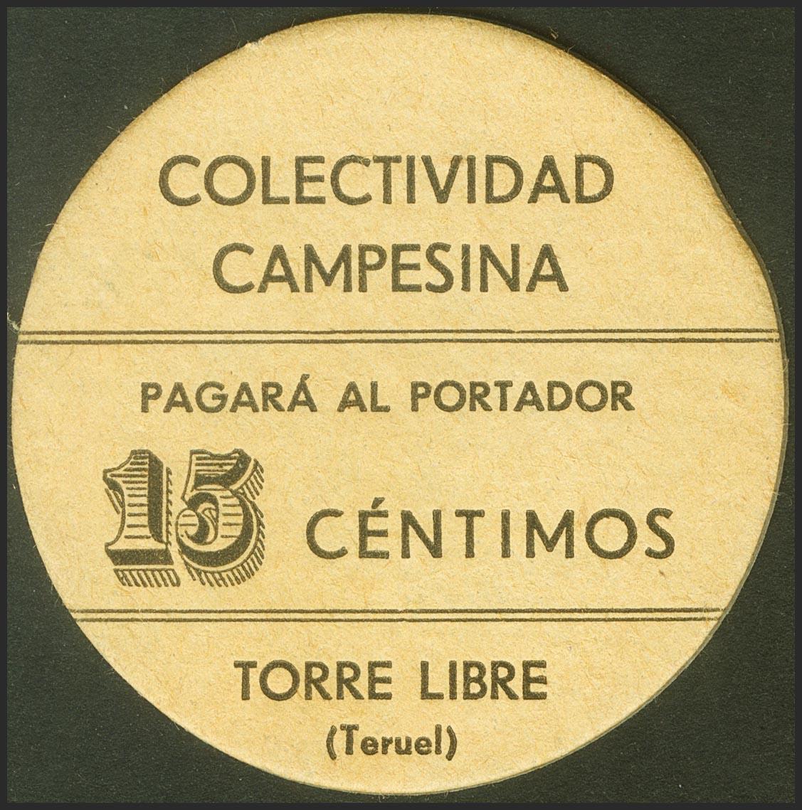 FREE TOWER (TERUEL). 15 cents. 1937. Peasant Collective. (Gonzalez: 5063). very rare Extremely Fine.