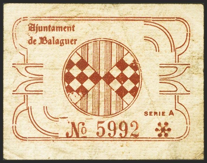 English BALAGUER (LERIDA). 10 cents. (1937ca). Series A. (González: 6489). Rare. Very Fine.