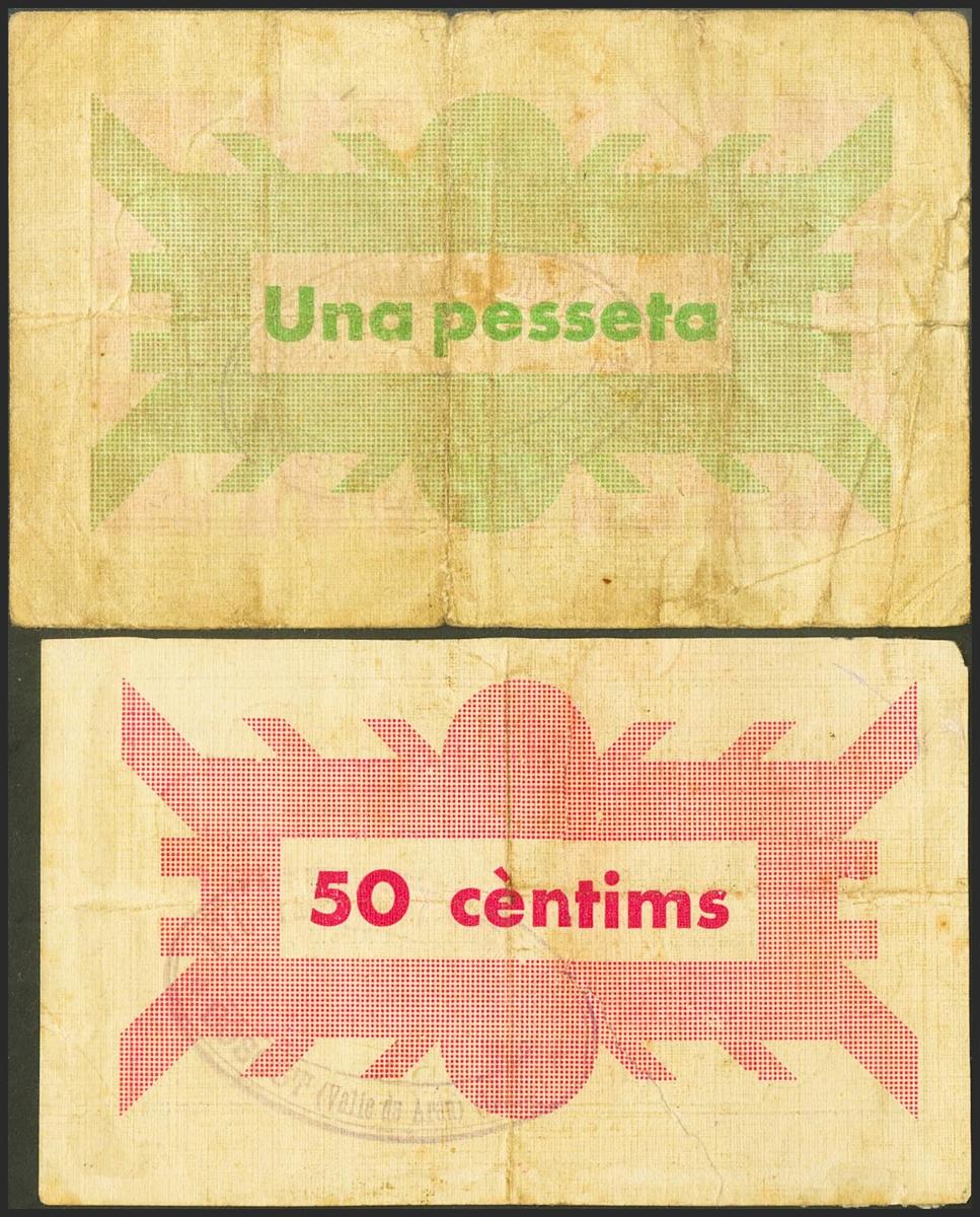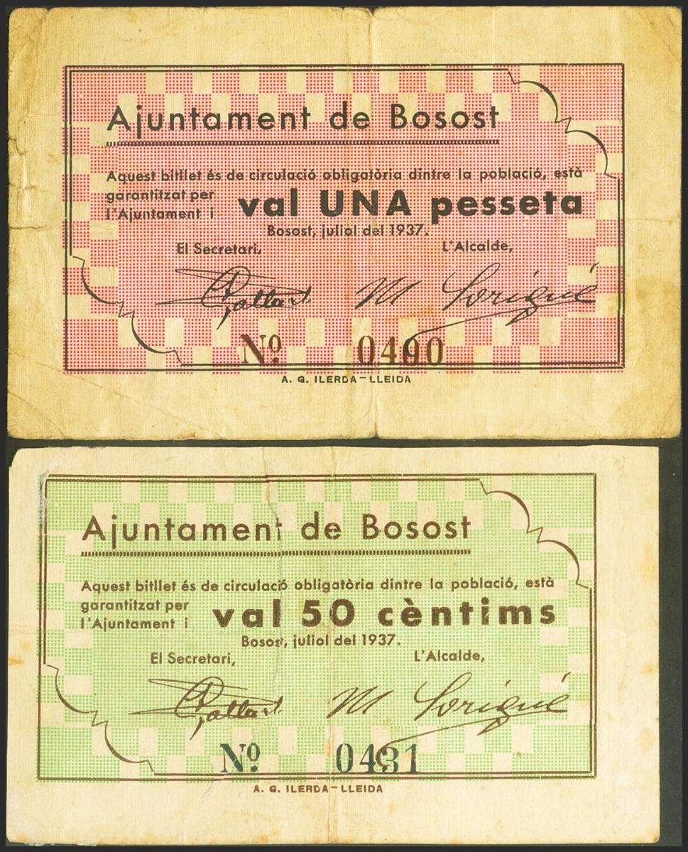 BOSOST (LERIDA). 50 Cents and 1 Peseta. July 1937. (González: 7175/76). Very rare complete series. Very Fine/ Almost Very Fine.