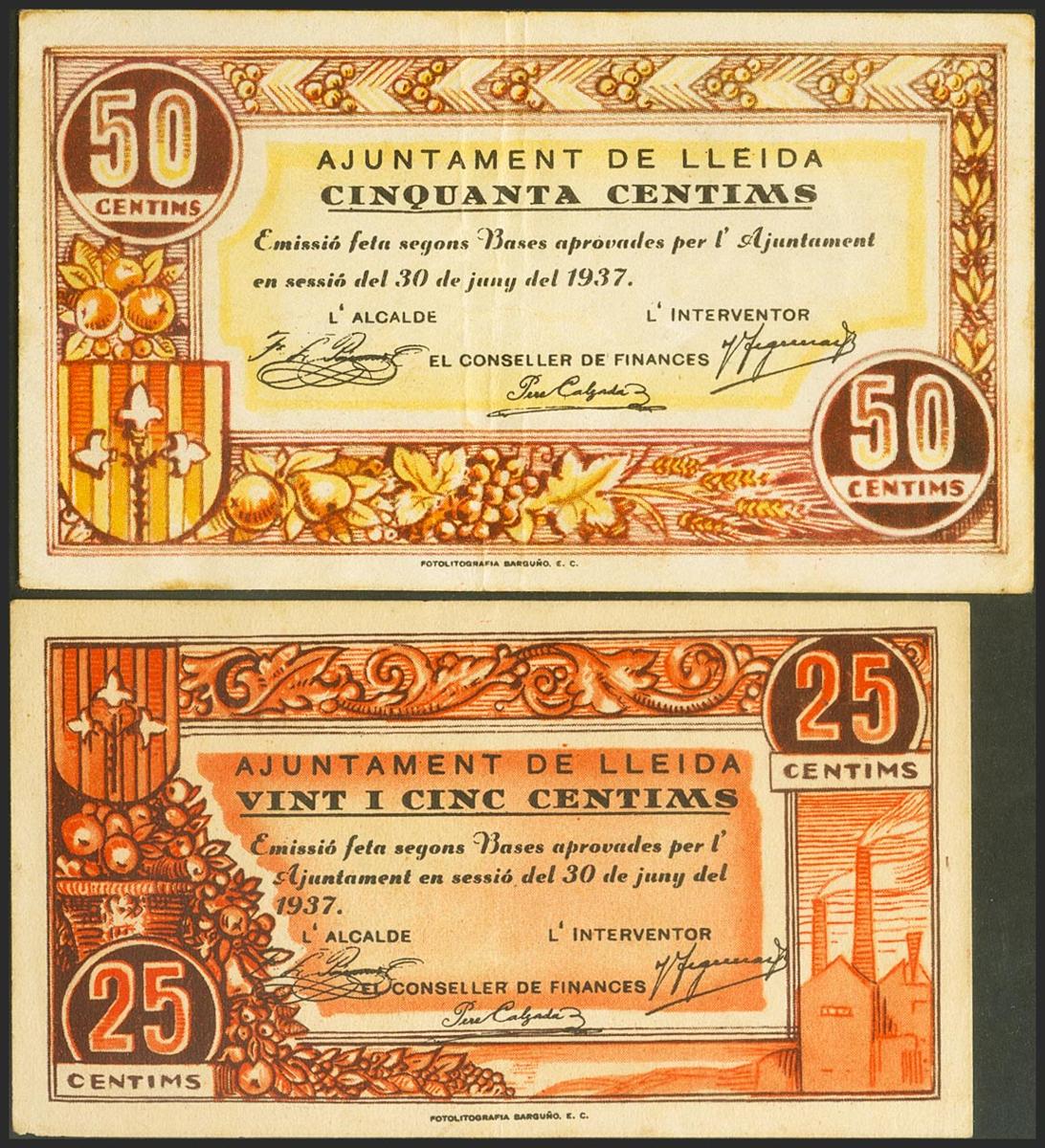 LERIDA. 25 cents and 50 cents. June 30, 1937. (González: 8358, 8359). Extremely Fine.