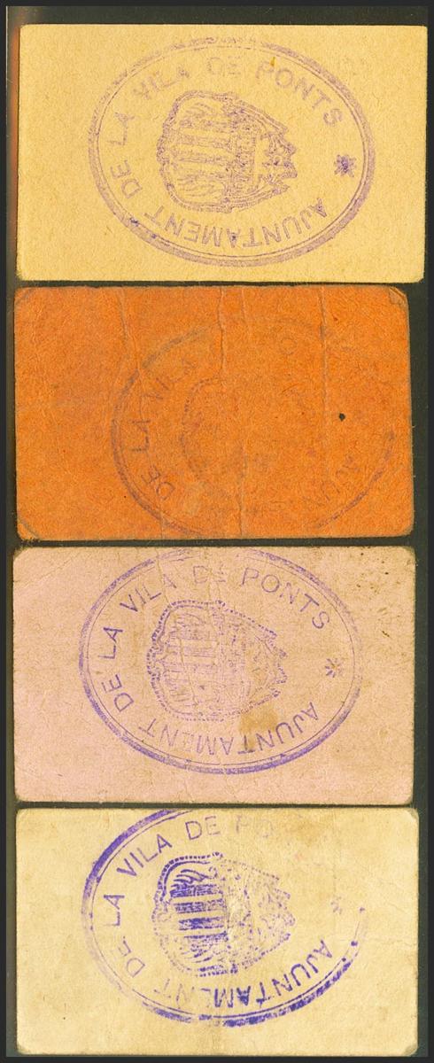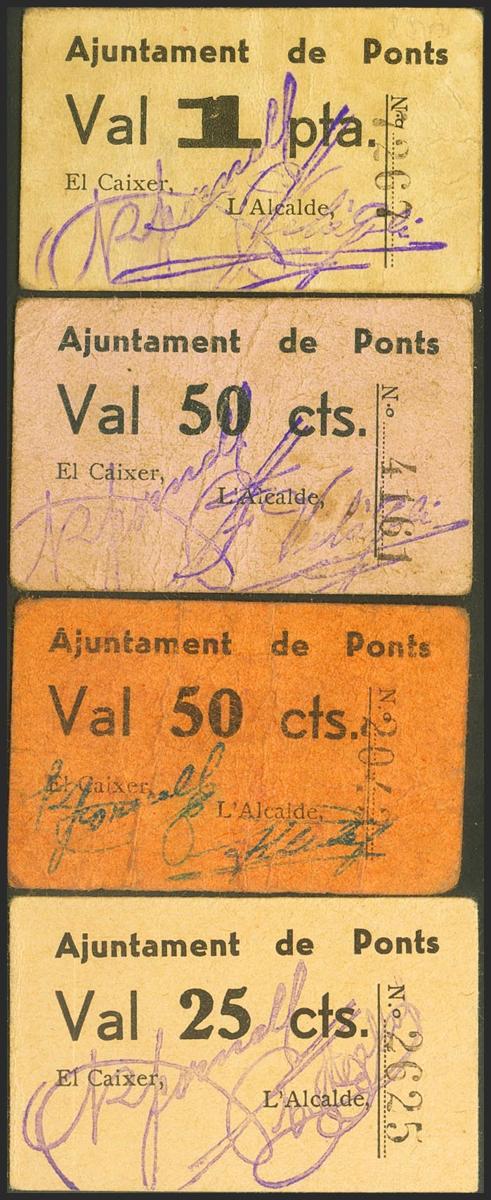 PONTS (LERIDA). 25 Cents, 50 Cents (2) and 1 Peseta. (1937ca). (Gonzalez: 9390, 9392, 9393, 9397). rare. Good Very Fine/ Very Fine.