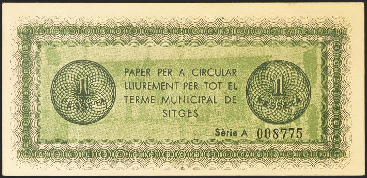 English SITGES (BARCELONA). 1 Peseta. June 1, 1937. Series A. (González: 10014). Good Extremely Fine.