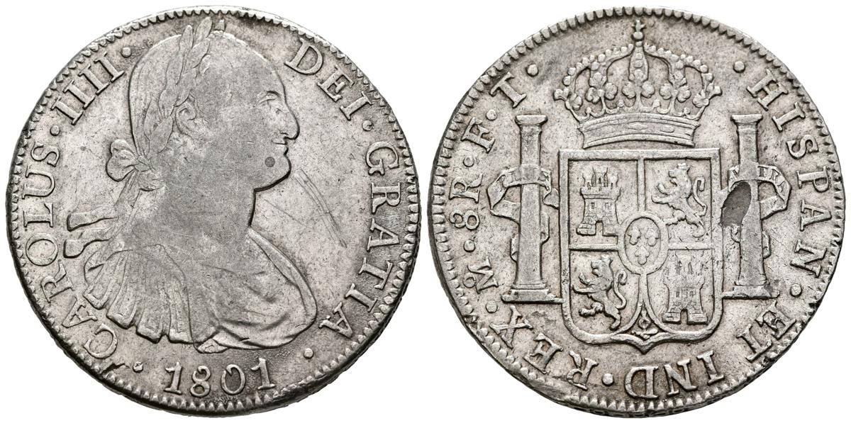English CARLOS IV (1788-1808). 8 Reales. (Ar. 26.86g/40mm). 1801. Mexico FT. (Cal-2019-972). Very Fine. Reverse sheet.