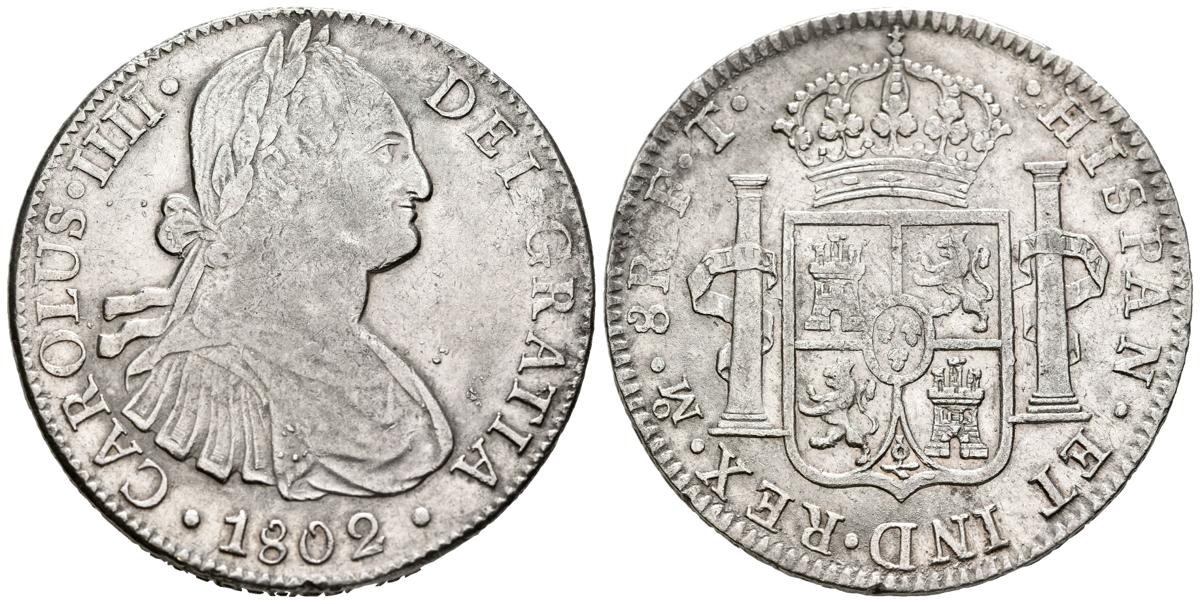 English CARLOS IV (1788-1808). 8 Reales. (Ar. 26.91g/39mm). 1802. Mexico FT. (Cal-2019-975). Very Fine.