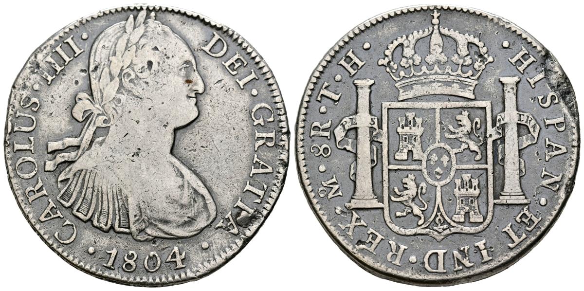 CARLOS IV (1788-1808). 8 Reales. (Ar. 26.56g/39mm). 1804. Mexico TH. (Cal-2019-980). Good Fine. cleaned.