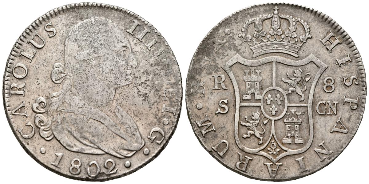 CARLOS IV (1788-1808). 8 Reales. (Ar. 26.95g/39mm). 1802. Sevilla CN. (Cal-2019-1064). Very Fine. Remains of oxidation.