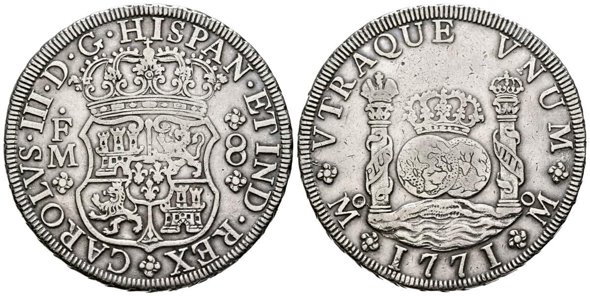 CARLOS III (1759-1788). 8 Reales. (Ar. 26.80g/40mm). 1771. Mexico FM. (Cal-2019-1103). Good Very Fine. cleaned.