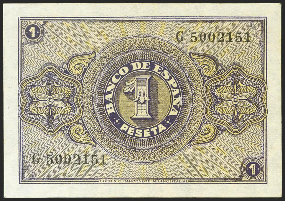 1 Peseta. April 30, 1938. Series G. (Edifil 2021: 428a). Retains much of the original sizing. Extremely Fine.