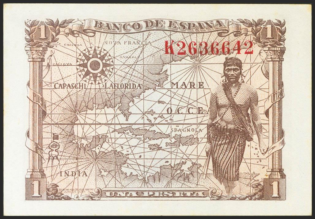 English 1 Peseta. June 15, 1945. Series K. (Edifil 2021: 448a). Original sizing. Uncirculated.