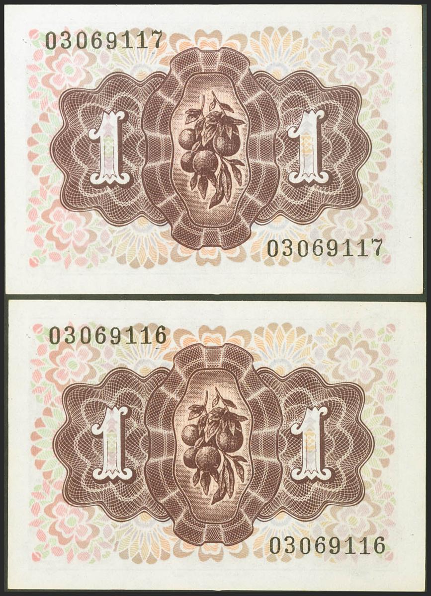 English 1 Peseta. June 19, 1948. Correlative couple. No serie. (Edifil 2021: 457). Original sizing. Uncirculated.
