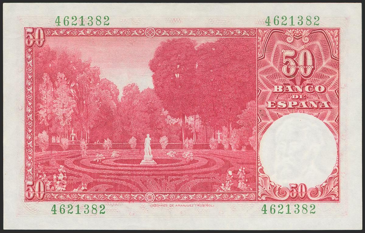 50 pesetas. December 31, 1951. No series. (Edifil 2021: 462). Retains much of the original sizing. Good Extremely Fine.