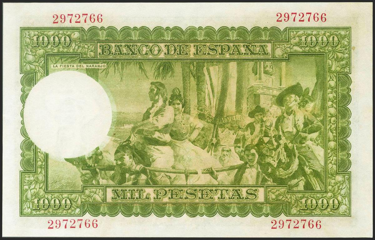 1000 Pesetas. December 31, 1951. No series. (Edifil 2021: 463). It retains part of its original sizing. Extremely Fine.