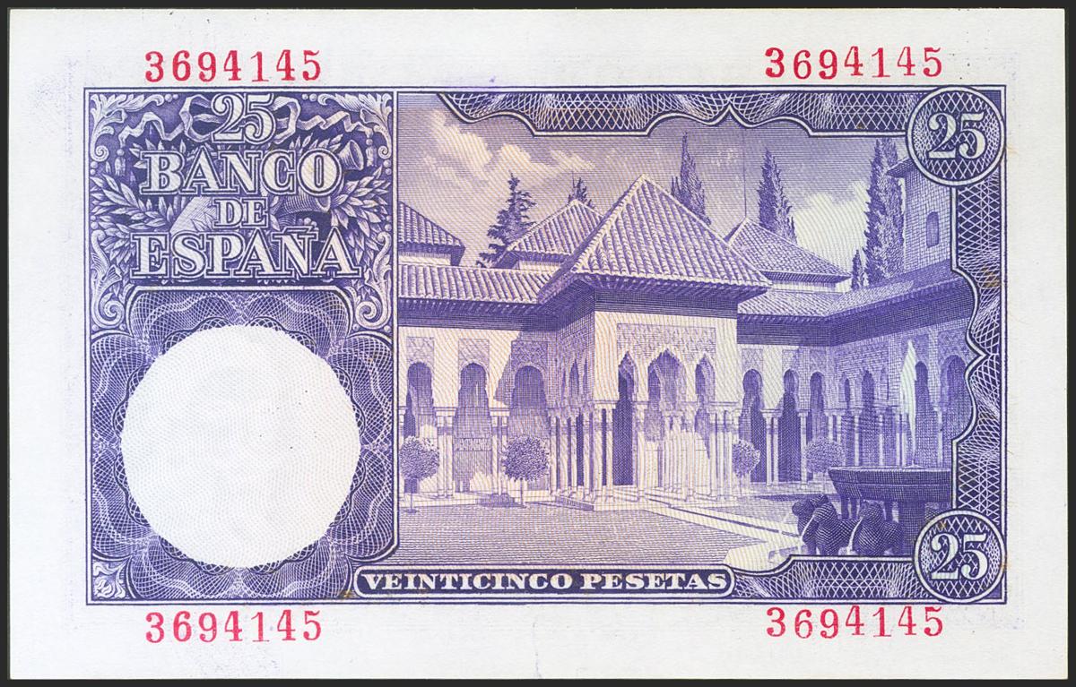 English 25 pesetas. July 22, 1954. No series. (Edifil 2021: 467). It retains much of its original sizing. Good Extremely Fine.